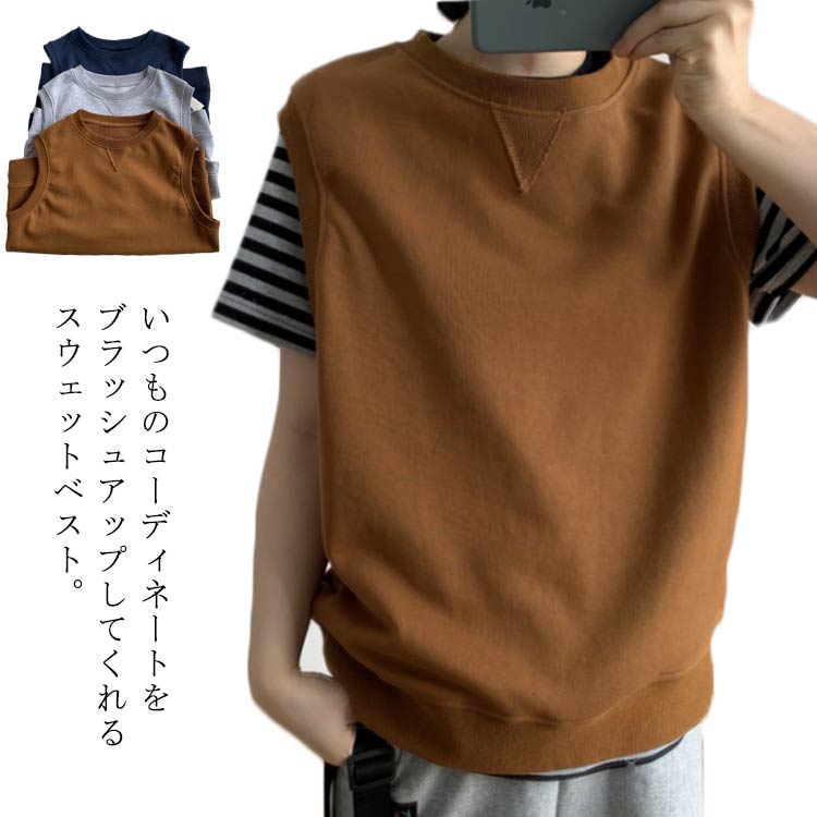 ボトルネックなベスト レディース プルオーバー ノースリーブ フレンチスリーブ スウェット スエット 裏毛 綿 コットン トップス