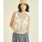tシャツ モチーフコード刺繍 シアーノースリーブプルオーバー レディース