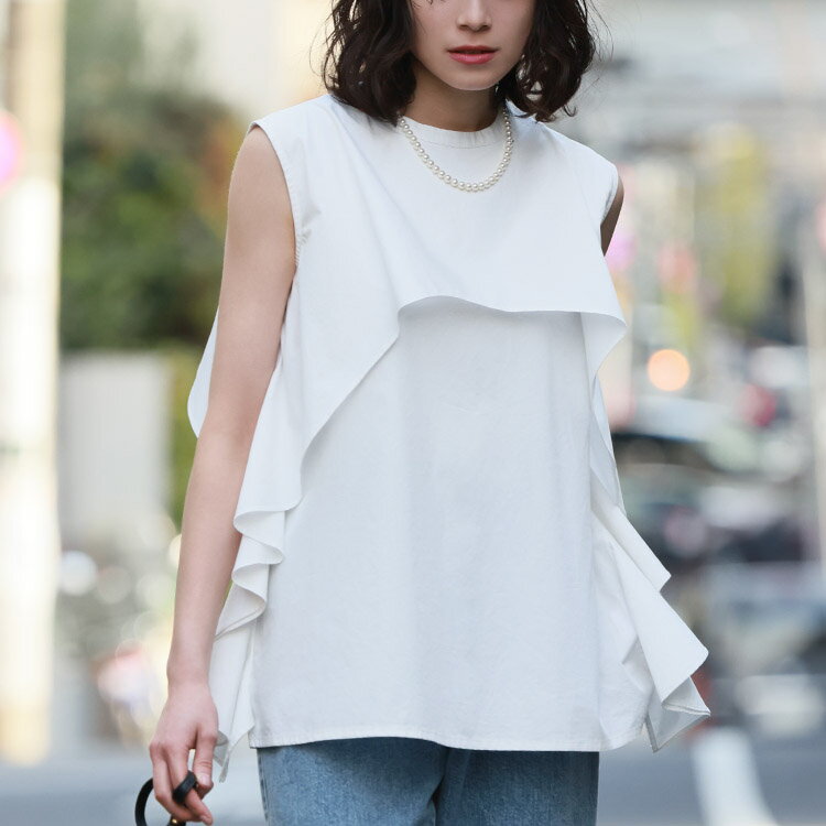 【28%OFF】ブラウス レディース トップス 1枚で決まる ノースリーブ ゆったり 着痩せ プルオーバー おしゃれ きれいめ 体型カバー かわいい クルーネック シンプル 大きいサイズ 可愛い フリル コットン 綿100%
