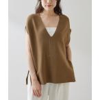 ニット セーター サスティナブルコットンナイロン Vネックノースリーブプルオーバー レディース