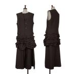 【中古】 コムデギャルソンCOMME des GARCONS ウール裾フリルノースリーブプルオーバージャケットセットアップ 焦げ茶M【レディース】