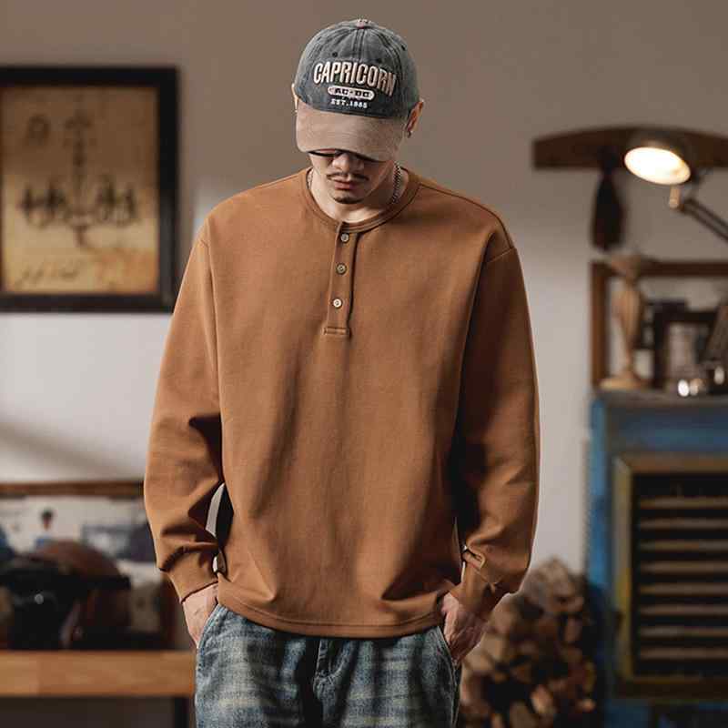 スウェット メンズ ヘンリーネック プルオーバー 裏起毛 ゆったり 宝藍色 咖啡色 麻混 トップス カットソー(x10)