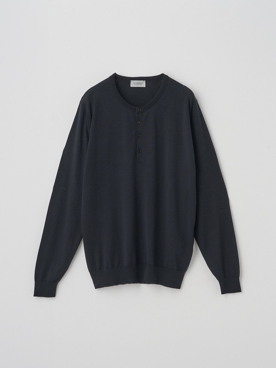 JOHN SMEDLEY ヘンリーネック長袖ニットプルオーバー | A4786 | 30G MODERN FIT ジョンスメドレー トップス ニット ブラック【送料無料】