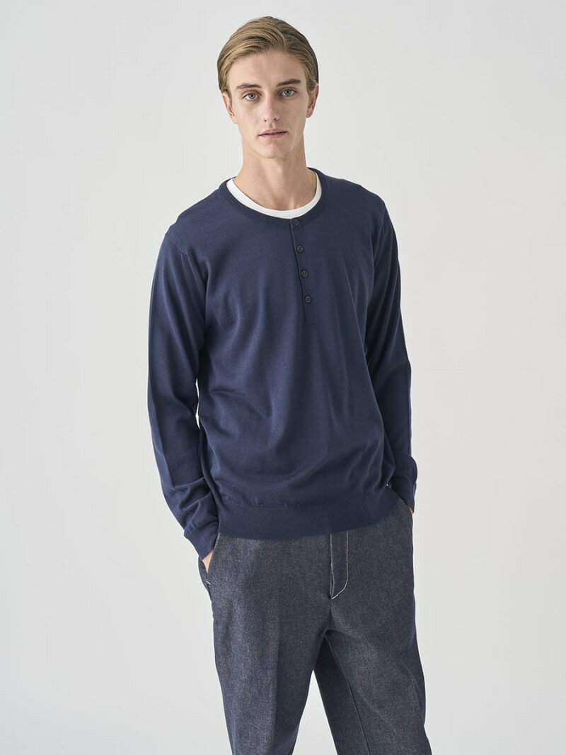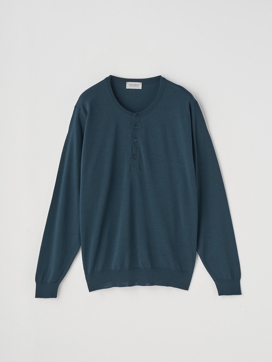 JOHN SMEDLEY ヘンリーネック長袖ニットプルオーバー | A4786 | 30G MODERN FIT ジョンスメドレー トップス ニット ブルー【送料無料】
