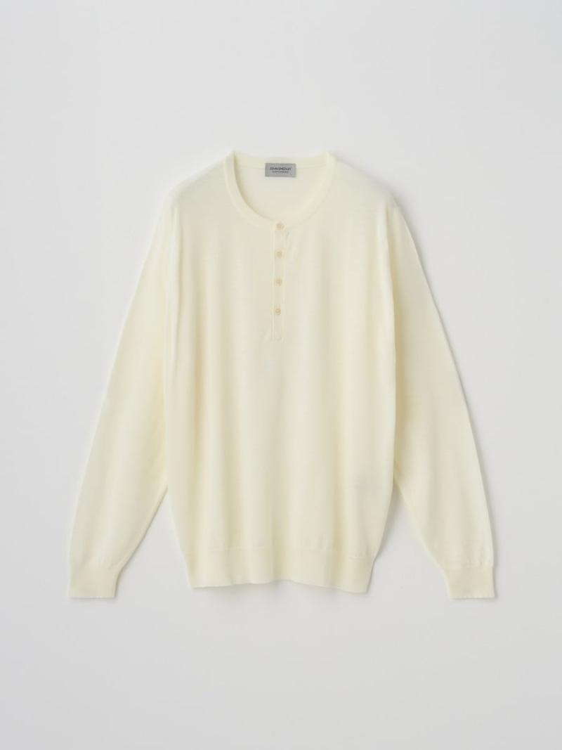 【正規取扱店】JOHN SMEDLEY A4786 ヘンリーネック長袖ニットプルオーバー 30G MODERN FIT SNOW WHITE(ジョンスメドレー)