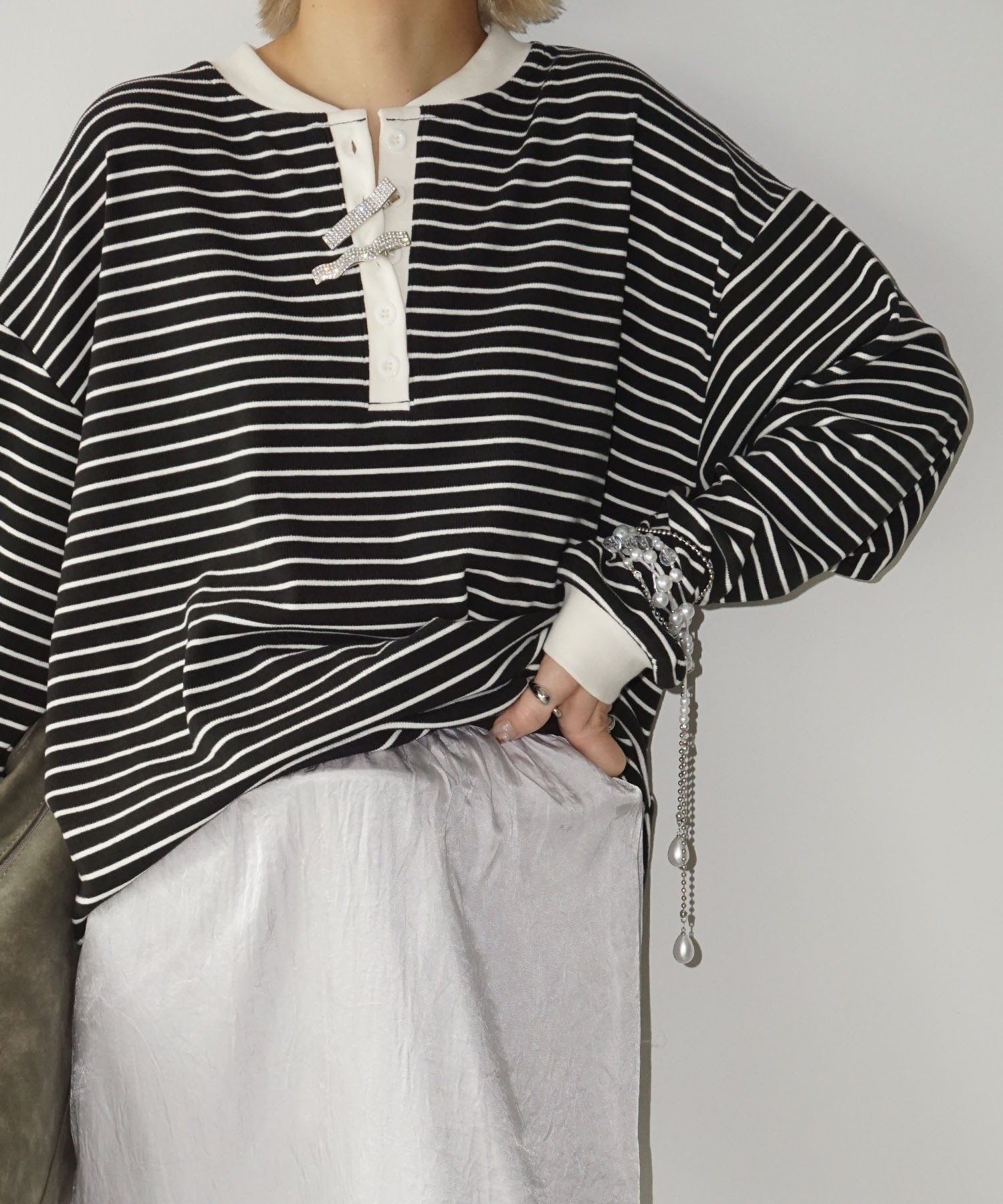 chuclla ボーダーヘンリーネック プルオーバー chw25a051 チュクラ トップス カットソー・Tシャツ ブラック ホワイト【送料無料】