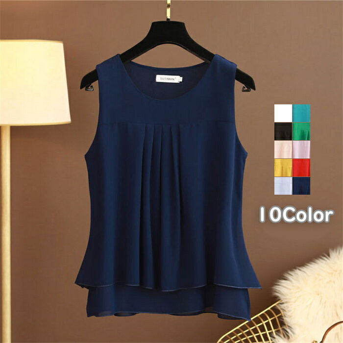 レディース トップス ノースリーブ ブラウス インナー Vネック シフォン タンクトップ プルオーバー 無地 ラウンドネック 多色 レイヤード風 重ね着 インナー 無地 ゆったり カジュアル かわいい 春夏 送料無料