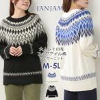 ニットプルオーバー 大きいサイズ レディース 長袖 求心柄 ラウンドネック セーター トップス M LL 3L 4L 5L