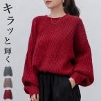 ラメ ニット セーター トップス 長袖 レディース ラメ糸 ローゲージ 防寒 プルオーバー ゆったり ラウンドネック リブ 秋 冬