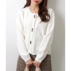 カーディガン フラワー ボタン ラウンドネック 長袖 ニット プルオーバー カーディガン レディース