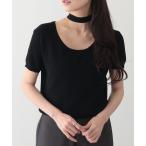 tシャツ テレコリブラウンドネックプルオーバー レディース
