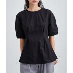 ブラウス シャツ ラウンドネック ペプラム タック 半袖 プルオーバー レディース