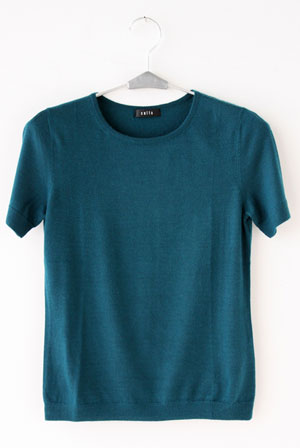 カシミヤ ラウンドネック半袖プルオーバー ブルーグリーン