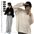 ●60%OFF!1,592円/枚!任意3枚購入&クーポンで●ボリューム袖ワッフルカットソー レディース トップス プルオーバー ロンT スウェット トレーナー オーバーサイズ 体型カバー 重ね着 ラウンドネック 前後差 体型カバー 無地 ゆったり 2025春 秋