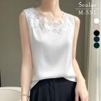 ブラウス レディース 女性 トップス インナー ノースリーブ 丸首 ラウンドネック プルオーバー ネックレース 首レース 刺繍 大きいサイズ 2XL以