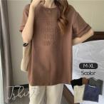 ニット セーター ソリッドカラー ラウンドネック リブ ニット プルオーバー レディース