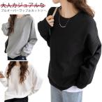 Tシャツ カットソー レディース トップス 長袖 ワッフル ゆったり 春 秋 ワッフルカットソー ラウンドネック プルオーバー ワッフル