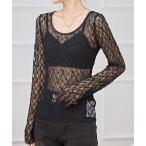 ラウンドネック ストレッチ レース 長袖 プルオーバー レディース