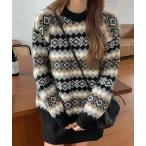 ニット セーター ノルディック柄 ラウンドネック リブ ニット プルオーバー レディース