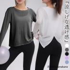 ヨガウェア トップス 長袖 レディース シアー ラウンドネック ピラティスウェア プルオーバー ゆったり 薄手 無地 黒 白 春 夏 秋
