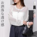 カットソー 長袖 レディース シアー シースルー トップス インナー ロングTシャツ チュニック プルオーバー ラウンドネック 黒 春夏 秋冬