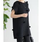 【SALE/30%OFF】BEIGE, 【洗える・Oggi 7月号掲載】LUPINUS / リネン混半袖プルオーバーギャザーニット ベイジ, トップス ニット レッド ブラック【送料無料】