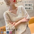 ニット セーター レース Vネック プルオーバー ニット レディース