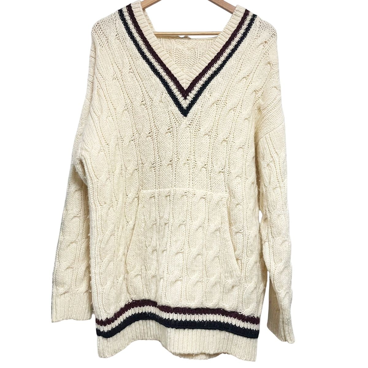 thom browne トムブラウン クラシックベビーケーブルニットVネックプルオーバー
