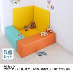 コーナー型 キッズ プレイマット 5点セット 設置幅125x125 ( フロアマット 1+ スツール 2+ 壁面マット 2) キッズスペース クッション マット 遊具 送料無料