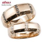 結婚指輪 ペアリング ペア マリッジリング ピンクゴールドk18 ダイヤモンド ブラックダイヤモンド 指輪 幅広 つや消し 18金 ダイヤ