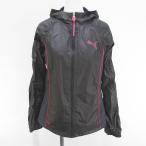 プーマ PUMA スポーツウェア パーカー ジャケット 薄手 M 黒系 ブラック ジップアップ ロゴ プリント 裏地メッシュ レディース