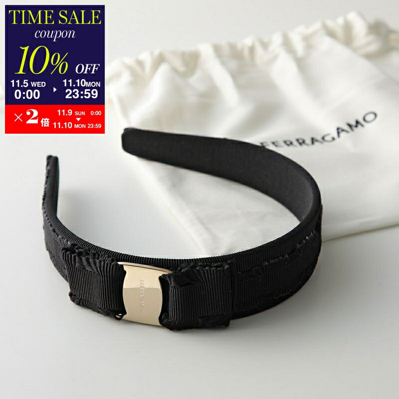 【11/10-23:59迄10%OFFクーポン対象】FERRAGAMO フェラガモ カチューシャ 34 6970 レディース ヘアアクセサリー ヘアバンド ヴィラリボン 001/NERO-ORO【cp_ten】