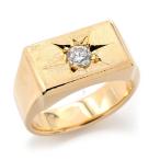 0.2ct天然ダイヤモンド 横長 四角 印台 リング 10号 K18YG シグネット 後光彫り 金無垢 18金 イエローゴールド 地金12.8g 中古 送料無料