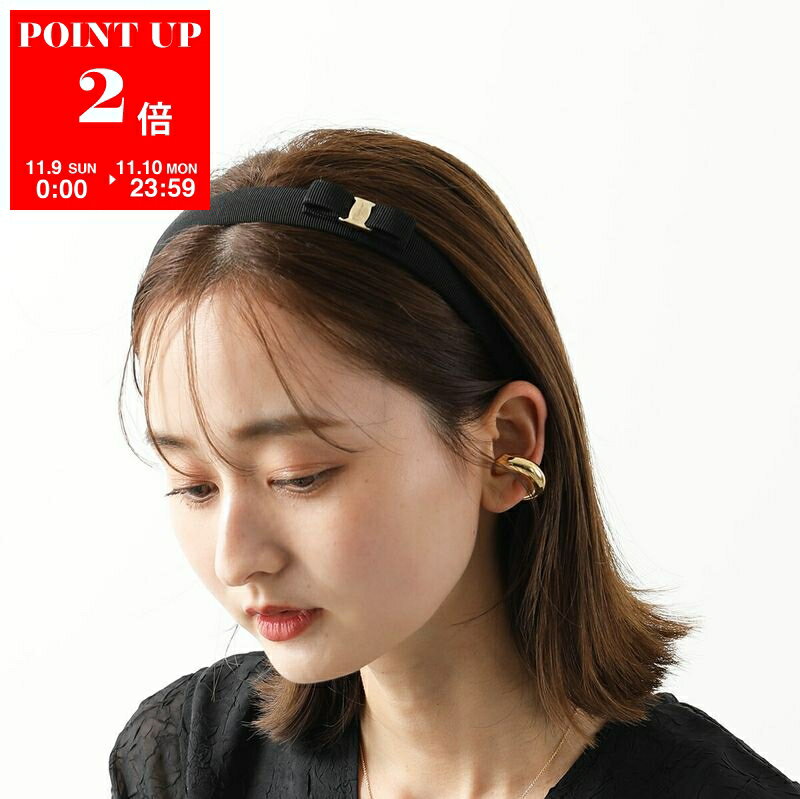 FERRAGAMO フェラガモ カチューシャ 34 0086 レディース ヴィラリボン ロゴ ヘアアクセサリー NERO/ORO