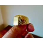 仁尾彫金『k18ゴールド太陽の印台リング、ヘアライン』ハンドメイド405