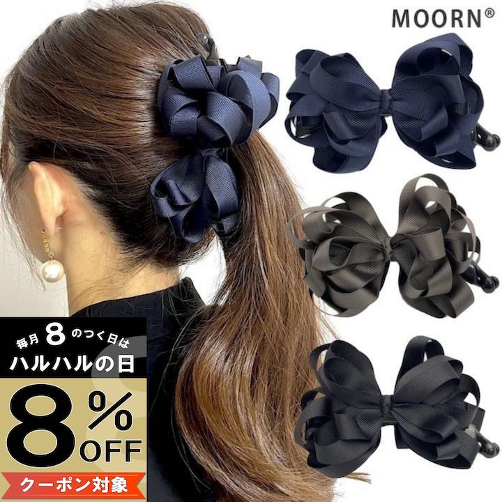 【本日8%OFFクーポン対象】【バナナクリップ 大きめ】ボリューム リボン バナナクリップ シンプル 大人 可愛い 大きめ ヘアクリップ レディース お洒落 まとめ髪 髪留め 上品 ヘアアクセサリー 黒 ブラック 紺 ネイビー ブラウン 通勤 通学【MOORN/モーン】MRN-BNN23051