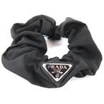 美品◇PRADA プラダ 1IF015 トライアングルロゴプレート付き Re-Nylon シュシュ ヘアゴム ヘアアクセサリー ブラック レディース