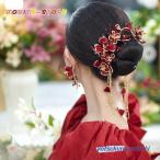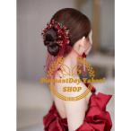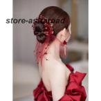 ウエディングヘッドドレス ウェディング ヘアピン レッド フラワー フリンジ 花嫁 髪飾り 結婚式 披露宴 二次会 パーティー 演奏会 発表会 和風 チャイナ風