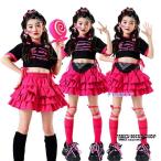 キッズダンス衣装 セットアップ チアガール 女の子 トップス スカート ヘアピン ソックス 黒 バラ色 女の子 子供服 ジャズダンス ダンス衣装 ヒップホップ セッ