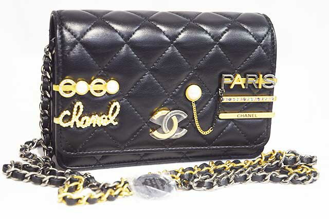 シャネル CHANEL マトラッセ ココクリップ チェーンショルダーウォレット ミニショルダーバッグ 財布 黒 ブラック ラムスキン ゴールド金具 G金具 ヘアピンモチーフ ココマーク CCマーク 本物 未使用 展示品 チェーンウォレット