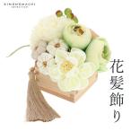 成人式 髪飾り Uピン 12点セット 「薫 白 グリーンリーフ タッセル MU-H-1068」振袖用髪飾り お花髪飾り 成人式 卒業式 結婚式 着物 日本製(メール便不可)