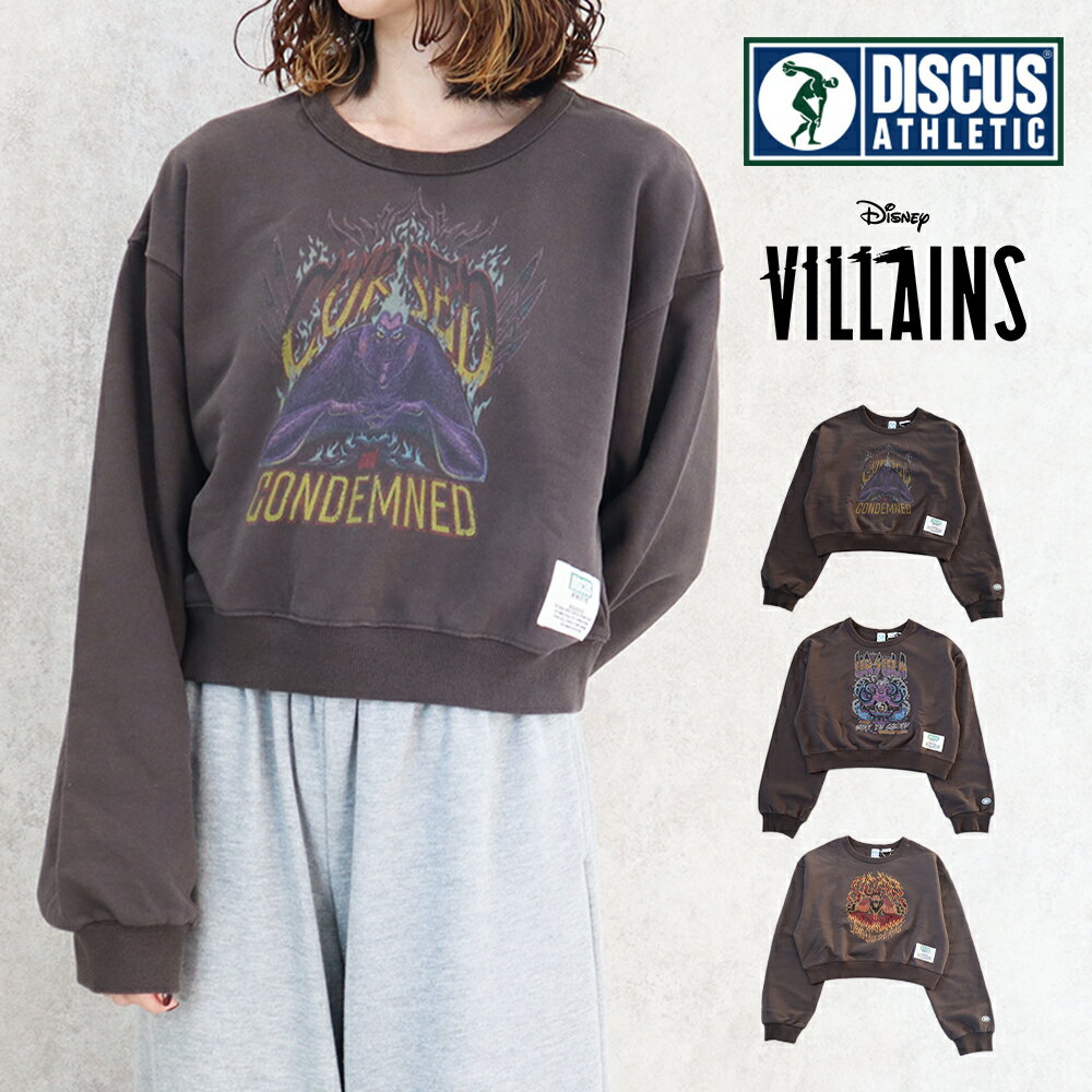 【スーパーセール価格!10%OFF】別注 DISCUS ディスカス ヴィランズ ディズニー コラボ スウェット クロップ丈 DISNEY アースラ スカー ハデス リトル・マーメイド ライオンキング ヘラクレス トップス 裏毛 ショート丈 レディース ヴィンテージ プリント トレーナー 秋冬