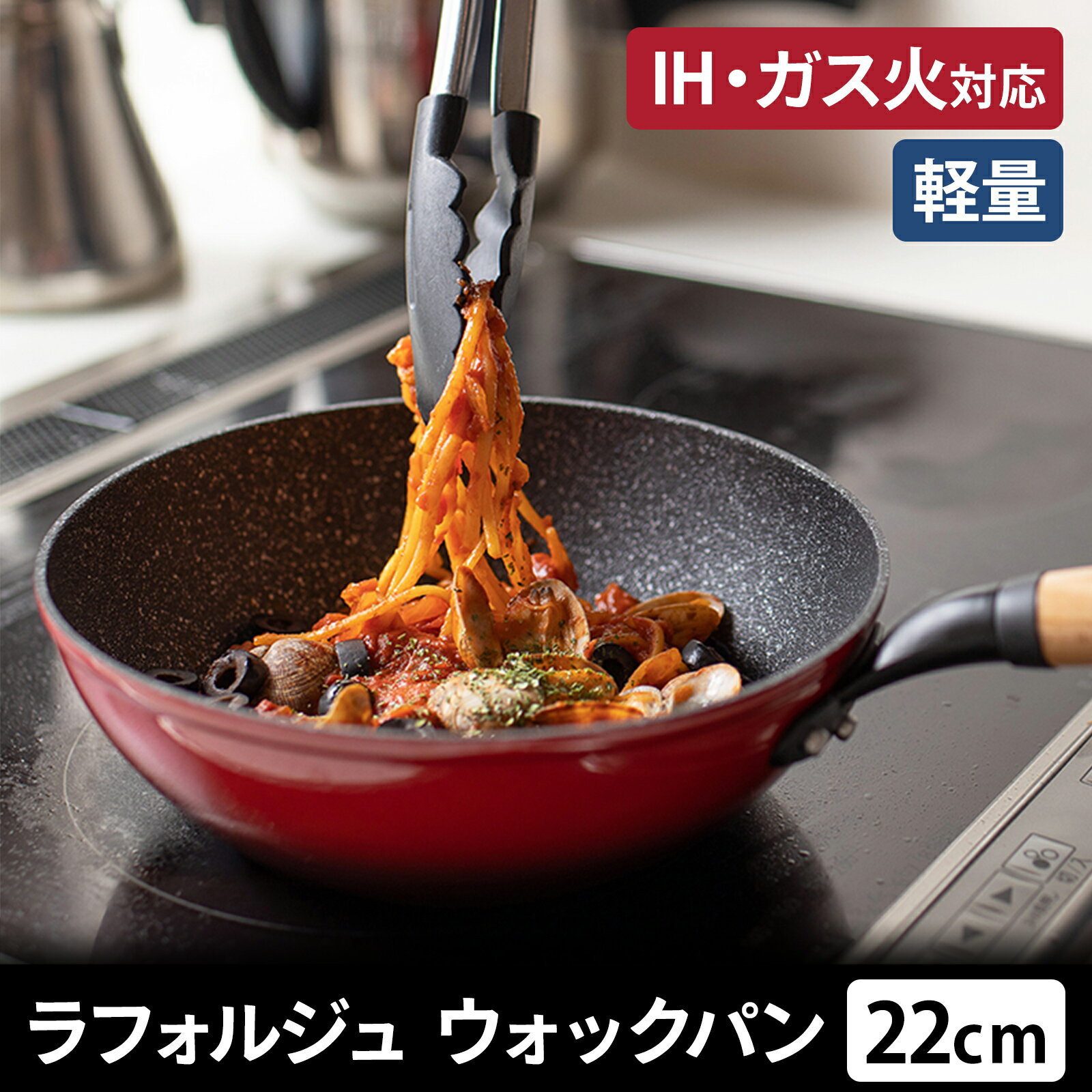【20%OFFクーポン!10/15限定】【送料無料】IH対応 ガス火 オーブン 長持ち 一人暮らし 安全 小さめ 小さい フッ素コーティング くっつかない こびりつきにくい 金属ヘラ 深型 ホーロー レッド コンパクト ラフォルジュ ウォックパン レッド 赤 22cm lbcp