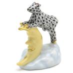 ヘレンド うし 置物 牛は月を飛び越える 黒色の鱗模様 手描き 磁器製 飾り物 Herend