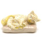 ヘレンド ねこ 置物 枕の上で眠るネコ 黄色の鱗模様 手描き 猫 磁器製 飾り物 Herend