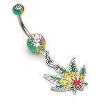 【14G】ヘンプチャーム付きラスタカラーカーブドバーベル【ボディピアス】【送料無料】