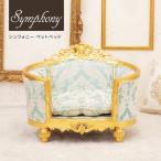 ソファ ペット ベッド アンティーク 椅子 犬 猫 オーバル型 Mサイズ 幅:77cm ゴールドxブルー 箔 布地 ロココ シンフォニー 1164-M-10F66