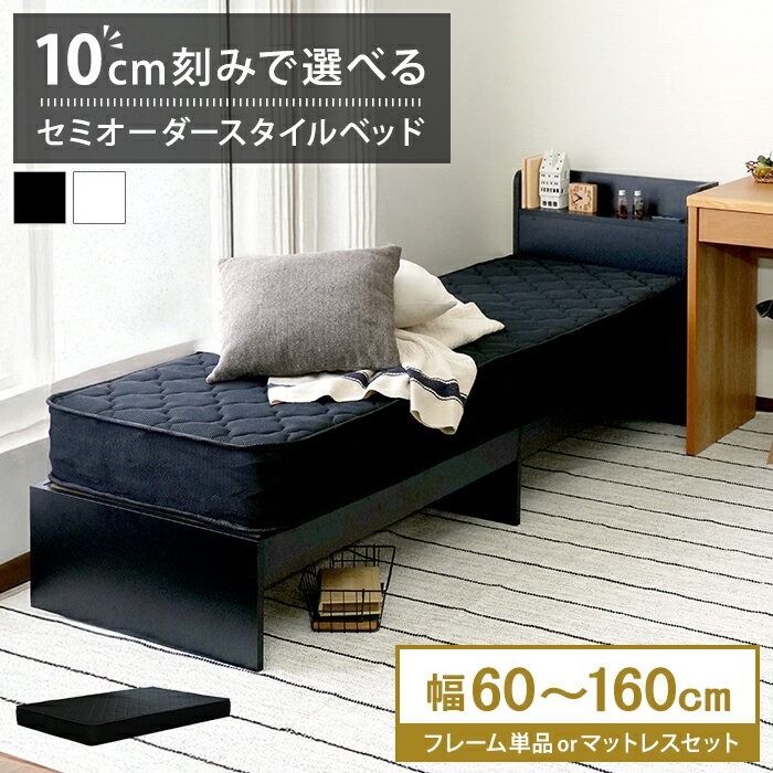 【割引クーポン】 ベッド セミオーダー 特殊サイズ 選べるサイズ フレーム単品orマットレス付き コンパクト ベッド マットレス付き 収納付き コンセント付き ブラック 黒 ホワイト 白 人気 定番 ベッド プエル 60cm 70cm 80cm 90cm 97cm 110cm 120cm 130cm 140cm 150cm 160cm