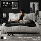 モダンデザイン・高級レザー・デザイナーズベッド プレミアムポケットコイルマットレス付き ダブル