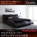 ダブルベッド 高級レザーベッド ホワイト 白 デザイナーズベッド マルチラススーパースプリングマットレ(フランスベッド)ス付き ベッド ダブル レザーベッド